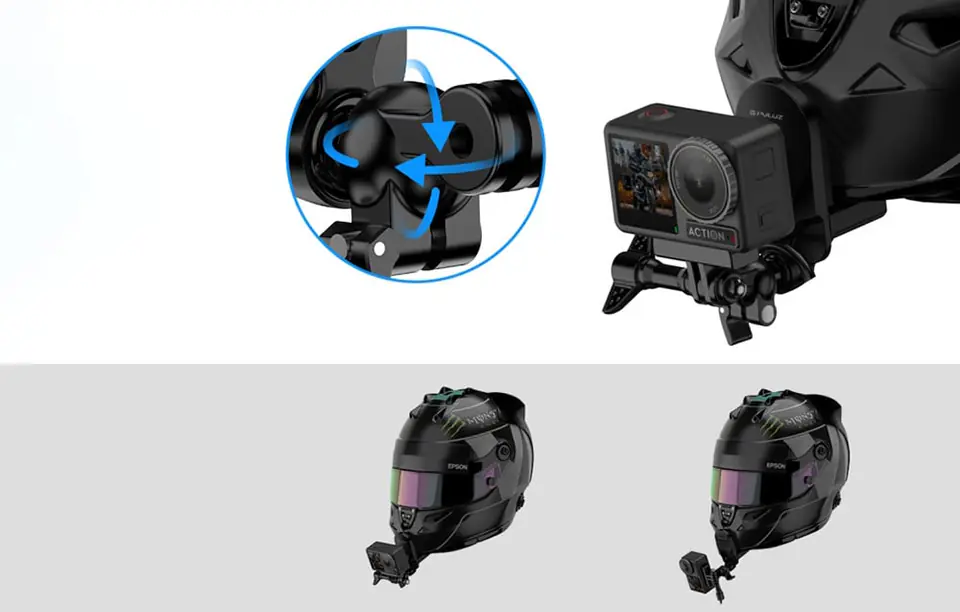 Przymocuj kamerę sportową do swojego kasku i nagraj zapierający dech w piersiach film z perspektywy pierwszej osoby. Możesz też swobodnie obracać urządzenie w zakresie 360° – pozwala na to wbudowany przegub kulowy akcesorium. Dzięki temu masz możliwość filmowania zarówno w pionie, jak i w poziomie! Produkt jest kompatybilny z większością modeli kasków i kamer sportowych.