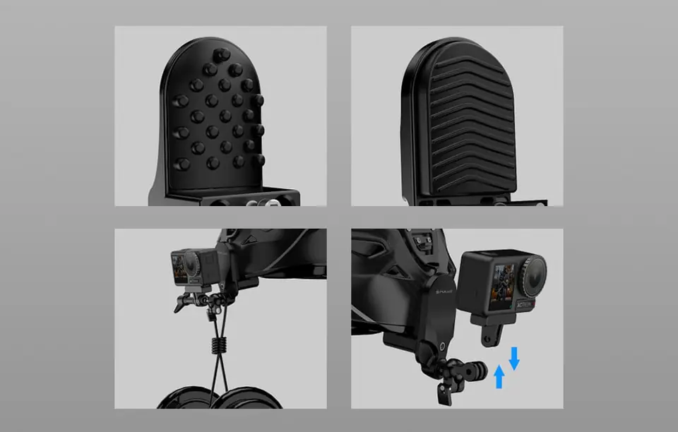 Akcesorium powstało ze wzmocnionego tworzywa sztucznego, co przekłada się na jego imponującą wytrzymałość. Co więcej, silikonowe antypoślizgowe podkładki gwarantują zamontowanej kamerze większą stabilność, a jednocześnie chronią kask przed zarysowaniem. Mocowanie jest przy tym bardzo proste w instalacji i demontażu. Jego dodatkowym atutem jest lekka, kompaktowa konstrukcja, która pozwala mieć je zawsze pod ręką.
