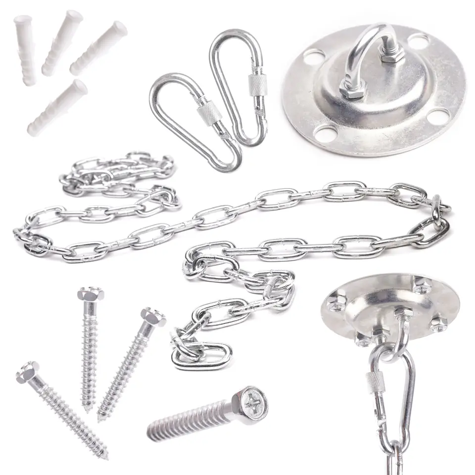 Metalowy, sufitowy zestaw z łańcuchem do montażu hamaków brazylijskich oraz huśtawek.