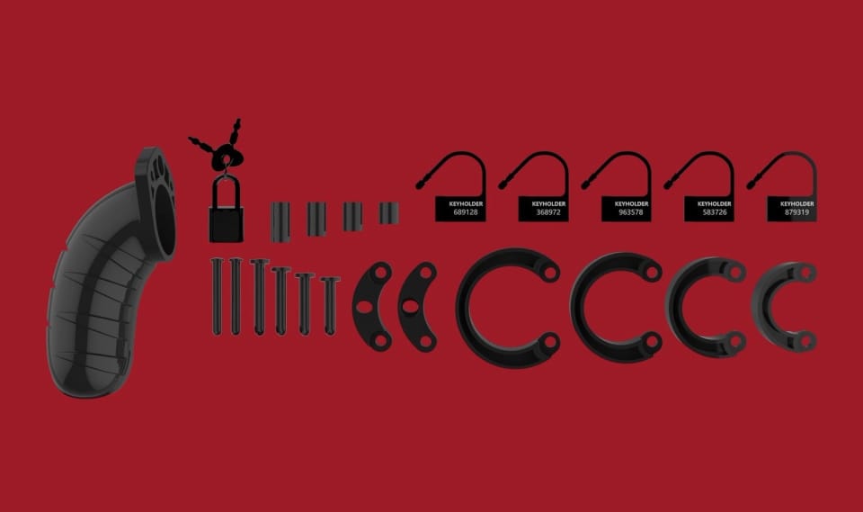 WZNIEŚ SIĘ NA WYŻYNY DOZNAŃ PŁYNĄCYCH Z BDSM! KONTROLOWAĆ LUB BYĆ KONTROLOWANYM - OTO JEST PYTANIE!Klatki erekcyjne Man|Cage wyprodukowano z poliwęglanu wysokiej jakości. Jest to niebywale lekki, wytrzymały oraz hipoalergiczny materiał. Klatka składa się z trzech, perfekcyjnie dopasowanych elementów. Dwie spinki łączą górne elementy ze sobą, a węższa, owalna spinka, łączy pierścienie z klatką. Szeroki wybór pierścieni w różnych rozmiarach, znajdujących się w różnych odległościach od siebie pozwoli Ci na idealne dopasowanie sprzętu! Pierścienie gwarantują wygodę oraz bezpieczeństwo. Klatkę z łatwością zamknąć można z pomocą metalowej kłódeczki lub paska. Regulowany pasek gwarantuje, że nie wzbudzisz podejrzeń przechodząc przez bramki na lotnisku, festiwalu czy imprezie! Zachowanie higieny jest bardzo ważne. Sprzęt Man|Cage gwarantuje Ci odpowiednią wentylację oraz pozwala na bezproblemowe "odcedzenie kartofelków". Klatka nie pozwoli Ci na osiągnięcie wzwodu podczas jej noszenia. Po jej zdjęciu natomiast, Twój penis będzie twardy jak skała! Klatka erekcyjna Man|Cage daje ogromną przewagę osobie, która posiada kluczyk!