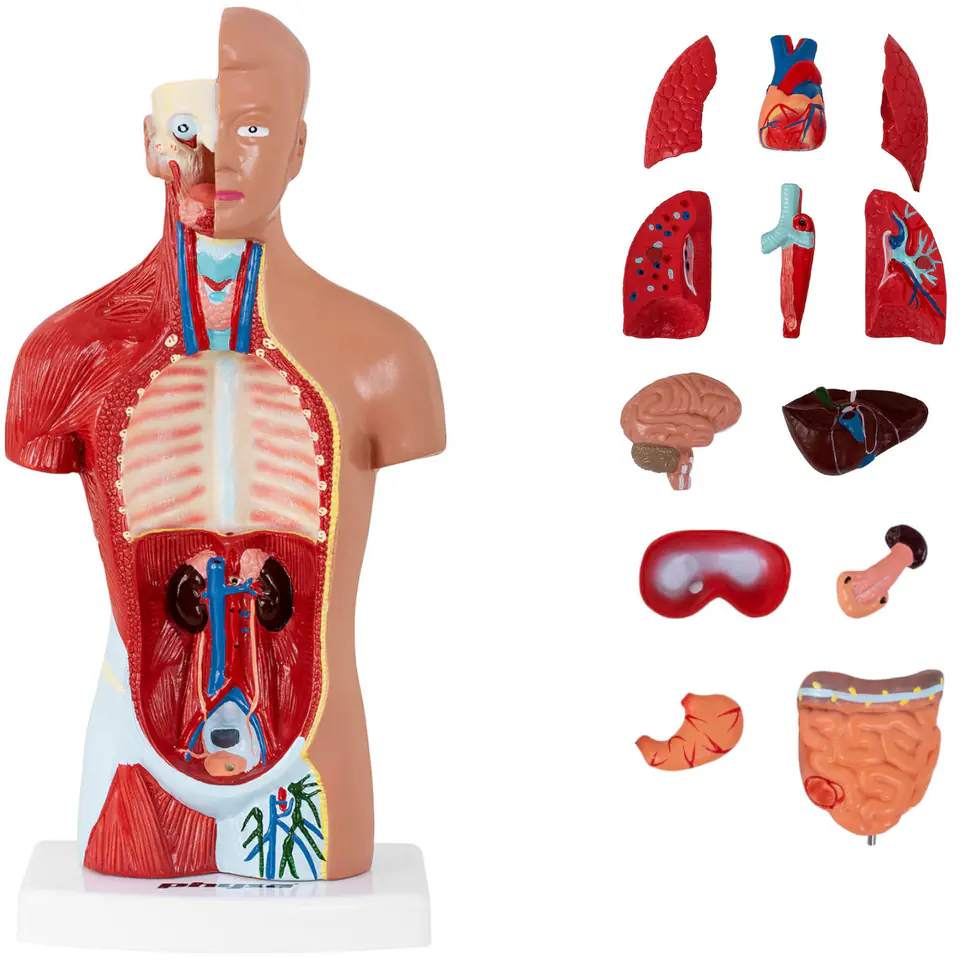 Trójwymiarowy model tułowia ma wysokość 26 cm, każda jego część została wykonana z wysoką precyzją i w pełni oddaje rzeczywistą budowę narządów. Model można ustawić na podstawie. Wyjmowane organy pozwalają dokładniej przyjrzeć się poszczególnym elementom tułowia człowieka. W modelu uwzględniono m.in. płuca, żołądek, serce, nerki, wątrobę, jelita, śledzionę, wyrostek robaczkowy, a także głowę.