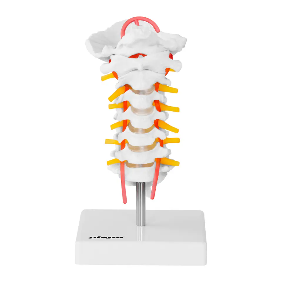 Anatomiczny model marki Physa prezentuje odcinek szyjny ludzkiego kręgosłupa w skali 1:1. Są w nim uwzględnione wszystkie siedem kręgów (C1 -C7), a także rozkład nerwów rdzeniowych, tętnic kręgowych oraz przebieg rdzenia. Model o długości 10 cm, dzięki stalowej konstrukcji charakteryzuje się elastycznością, która odpowiada ruchom prawdziwego kręgosłupa.