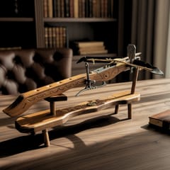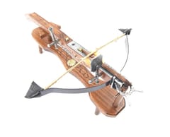Model kuszy na stojaku – CAV Model kuszy CAV to wysokiej jakości replika tej średniowiecznej broni. Drewniane łoże i metalowe elementy kuszy świetnie imitują oryginalny wygląd, a solidna drewniana podstawa zapewnia stabilną ekspozycję. Model kuszy to idealny prezent dla każdego, kto pasjonuje się historią średniowiecza, militariami lub po prostu lubi interesujące, stylowe przedmioty. Kusza może być również oryginalnym pomysłem na prezent dla mężczyzny ceniącego stylowe dekoracje. Model kuszy na stojaku doskonale sprawdzi się jako element dekoracyjny w męskim pokoju, biurze lub bibliotece. Stanowi on niebanalną ozdobę, która nada wnętrzu charakteru i przyciągnie wzrok gości. Stanowi ona również doskonały sposób na zaprezentowanie pasji do historii lub militariów. Informacje o produkcie: ·Długość: 33 cm ·Materiał: drewno, metal ·Wymiary podstawy: 20 x 15 cm ·Kusza nie strzela Kusza to broń miotająca, która wykorzystuje energię zmagazynowaną w sprężystej cięciwie do wystrzelenia pocisku. Chociaż kusze kojarzą się przede wszystkim ze średniowieczem, ich historia sięga znacznie dalej. Kusza to broń miotająca, która wykorzystuje energię zmagazynowaną w sprężystej cięciwie do wystrzelenia pocisku. Chociaż kusze kojarzą się przede wszystkim ze średniowieczem, ich historia sięga znacznie dalej. Kusze odegrały kluczową rolę w wielu historycznych bitwach, m.in. w bitwie pod Hastings w 1066 roku, gdzie Normanowie wykorzystali je do pokonania Anglosasów. Kusze były również używane podczas krucjat, wojen husyckich i wojny stuletniej. W XVI wieku kusze zaczęły stopniowo ustępować miejsca broni palnej. Były one jednak nadal używane do polowań i strzelectwa sportowego. W XIX wieku nastąpił wzrost zainteresowania kuszami jako bronią historyczną. Kusze były często postrzegane jako broń niehonorowa, ponieważ pozwalały na zabijanie z dużej odległości bez narażania się na bezpośrednie niebezpieczeństwo. W rezultacie kusze były czasami zakazywane w niektórych krajach. Pomimo swojej mrocznej historii, kusze są nadal fascynującymi przedmiotami, które budzą zainteresowanie historyków, miłośników militariów i kolekcjonerów. Ten produkt jest dekoracją kolekcjonerską. To nie jest zabawka. Chronić przed dziećmi.