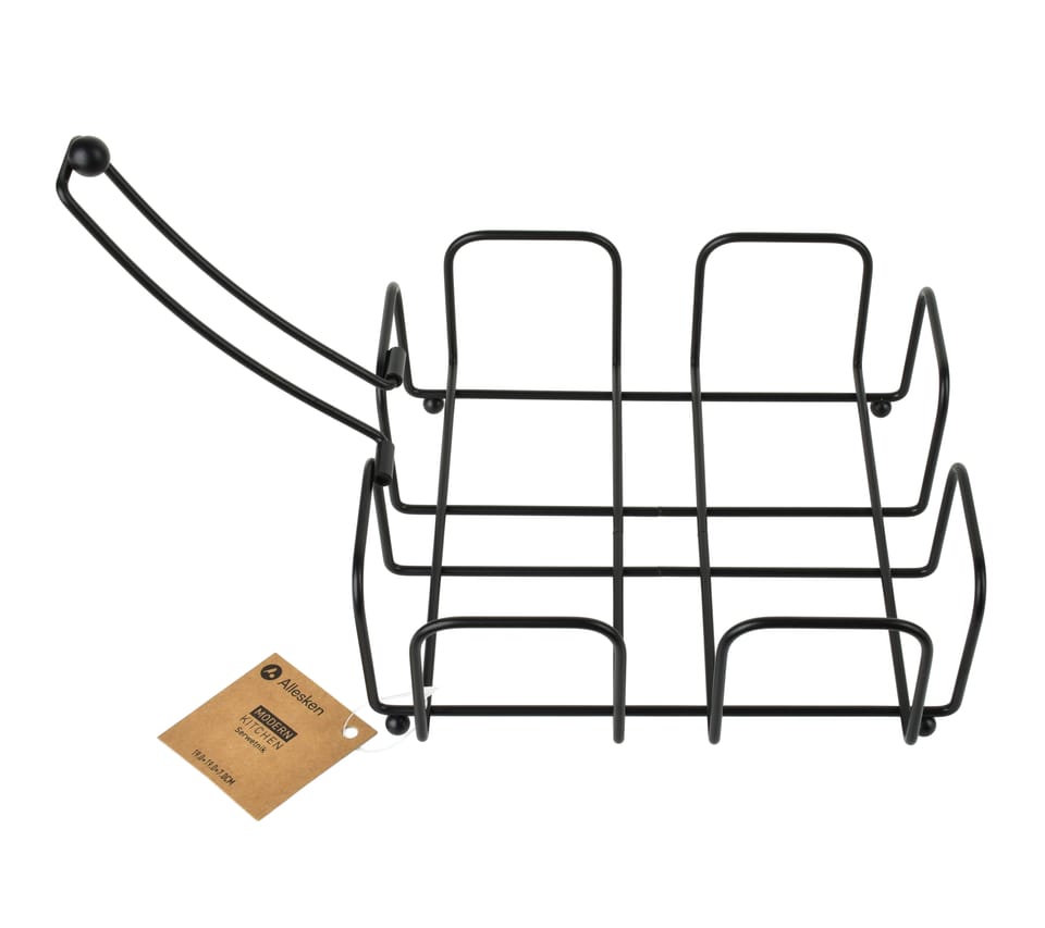 Serwetnik MODERN KITCHEN o wymiarach 19 19 7 cm to elegancki i funkcjonalny dodatek, który sprawdzi się zarówno w domowych wnętrzach, jak i podczas spotkań na tarasie czy w ogrodzie. Wykonany z metalu w czarnym kolorze, wyróżnia się nowoczesnym, minimalistycznym designem i solidnym wykonaniem. Przystosowany do serwetek o rozmiarze 33 33 cm lub mniejszych, zapewnia estetyczne przechowywanie i łatwy dostęp do serwetek w każdej sytuacji. Dodatkowym atutem jest metalowe ramię dociskowe, które utrzymuje serwetki na miejscu, chroniąc je przed rozwiewaniem na wietrze. Dzięki swojej funkcjonalności i uniwersalnemu wyglądowi serwetnik ten doskonale komponuje się z różnymi stylami aranżacyjnymi i jest praktycznym uzupełnieniem stołu w każdej przestrzeni.