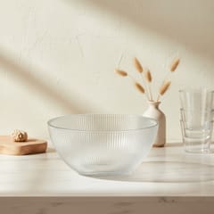 Szklana miska marki MODERN KITCHEN o pojemności 2 litrów to stylowy i praktyczny element każdej kuchni, idealny do serwowania świeżych sałat, makaronów czy owoców. Jej wymiary . 22,5 11 10 cm . zapewniają odpowiednią pojemność do przygotowania i podania większych porcji, a jednocześnie gwarantują wygodę użytkowania.Wykonana z wysokiej jakości szkła w efektowny prążkowany wzór, miska łączy nowoczesną estetykę z ponadczasową elegancją. Prążkowana faktura dodaje jej charakteru i sprawia, że pięknie prezentuje się zarówno na codziennym stole, jak i podczas przyjęć. Transparentna forma pozwala w pełni wyeksponować barwy i strukturę potraw, co podkreśla ich apetyczny wygląd. Miska MODERN KITCHEN to nie tylko funkcjonalne naczynie, ale także stylowa dekoracja stołu, która doda uroku każdemu posiłkowi. wymiar: 22,5x11x10cm pojemność: 2L waga: 1,1kg