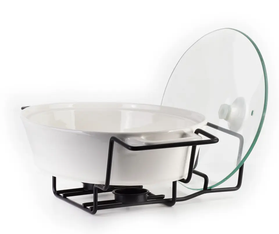 Naczynie z podgrzewaczem marki Allesken z serii MODERN KITCHEN poj. 1,6L, 38x26x7,9cm to serwowanie potraw na co dzień i od święta. . Kolor: granatowy, czarny stelaż . Materiał: kamionka . . Marka: Allesken . Zastosowanie: serwowanie potraw . Pojemność produktu: 1,6L . Wymiar: 33,2x22xh6,6cm . Symbol: HTN5816,5905771405816 . Kolekcja: MODERN KITCHEN Naczynie jest idealne do serwowania najróżniejszych potraw. Stabilny stojak wykonany ze stali chromowanej umożliwia serwowanie gorącej potrawy. Dzięki podgrzewaczom serwowane dania pozostaną ciepłe przez długi czas Szklana pokrywa posiada ceramiczny uchwyt Naczynie oraz pokrywę można myć w zmywarce Stojak czyścić wilgotną ściereczką Stojak posiada miejsce na umieszczenie świeczek typu tea-light (do zestawu NIE są dołączone świeczki)