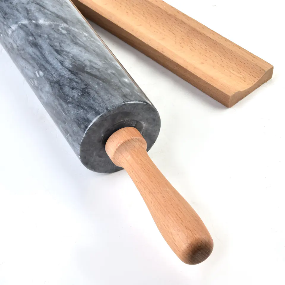 Odkryj doskonałość i elegancję w każdym detalu z Wałkiem Kuchennym MODERN KITCHEN Wałek 44cm! Specjalnie zaprojektowany dla pasjonatów gotowania, którzy cenią sobie wysoką jakość oraz funkcjonalność w kuchni. Sprawdź, jakie korzyści przyniesie Ci ten niezastąpiony element wyposażenia kuchni.Elegancki Design i Wyjątkowa WytrzymałośćWałek wykonany z wysokiej jakości granitu to nie tylko gwarancja trwałości, ale także synonim elegancji, która doda blasku każdej kuchni. Kamień granitowy, z którego został wykonany wałek, zapewnia idealną gładkość i masę, co ułatwia rozwałkowywanie ciasta na pożądaną grubość bez zbędnego wysiłku.Komfort Użycia z Drewnianymi ElementamiUchwyty wałka wykonane z naturalnego drewna nie tylko pięknie się prezentują, ale też są ergonomicznie ukształtowane. Dzięki temu, praca z wałkiem staje się czystą przyjemnością. Drewno jest przyjemne w dotyku i zapewnia stabilny chwyt, co jest kluczowe podczas przygotowywania wypieków wymagających precyzji.Praktyczna Podstawka - Porządek i Higiena w KuchniDołączona do zestawu drewniana podstawka to nie tylko estetyczny dodatek, ale przede wszystkim funkcjonalne rozwiązanie. Podstawka zapewnia wygodne przechowywanie wałka, gdy nie jest on używany, oraz utrzymuje porządek i higienę w miejscu pracy. Dzięki niej blat pozostaje czysty, a wałek jest zawsze pod ręką.Dlaczego Wałek Kuchenny MODERN KITCHEN Wałek 44cm?Wytrzymały i trwały: Granit, z którego wykonany jest wałek, zapewnia jego długotrwałe użytkowanie bez ryzyka ścierania się czy odkształcania.Elegancja i styl: Nowoczesny design wałka doskonale wpasuje się w wystrój każdej kuchni, dodając jej charakteru i stylu.Praktyczność i funkcjonalność: Drewniane uchwyty oraz podstawka są nie tylko piękne, ale też niezwykle praktyczne - zapewniają komfort użytkowania i utrzymanie czystości.