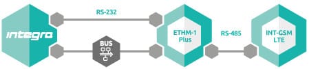 Dużym atutem modułu INT-GSM LTE jest możliwość współpracy z modułem ethernetowym ETHM-1 Plus (połączenie RS-485). Duet ten pozwala na realizowanie dwutorowego monitoringu (Dual Path Reporting), zgodnego z normą EN 50136, a także na określenie priorytetu torów monitorowania zdarzeń (Ethernet, dane komórkowe i SMS). Domyślnie sieć komórkowa jest zapasowym kanałem łączności dla sieci Ethernet.