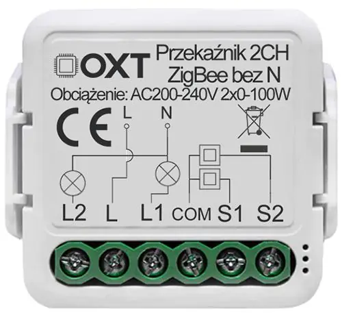 Moduł OXT mini przekaźnik 2 obw. bez N ZigBee TUYA T272