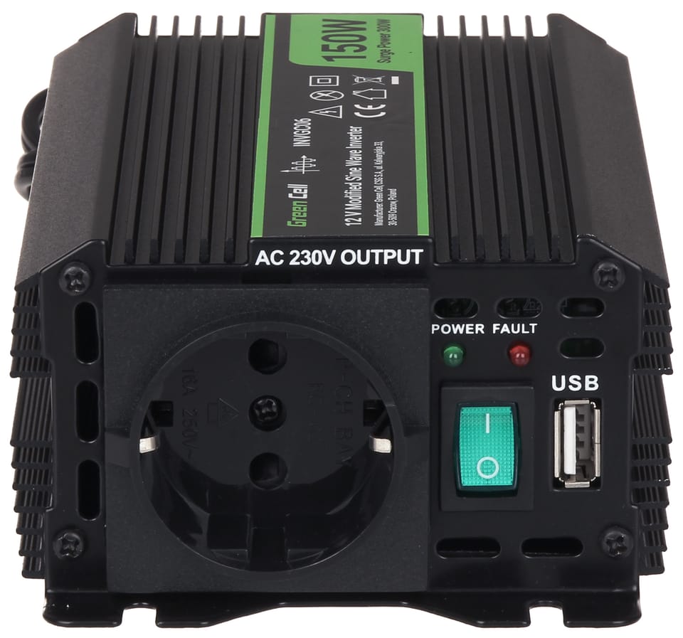 Uwaga!Ze względu na charakter napięcia wyjściowego z przetwornicy, nie nadaje się ona do zasilania urządzeń wyposażonych w silniki indukcyjne oraz transformatory