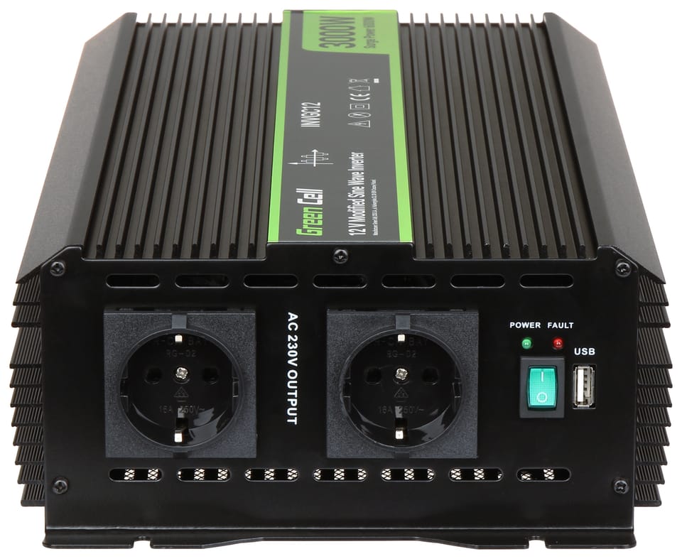 Uwaga!Ze względu na charakter napięcia wyjściowego z przetwornicy, nie nadaje się ona do zasilania urządzeń wyposażonych w silniki indukcyjne oraz transformatory