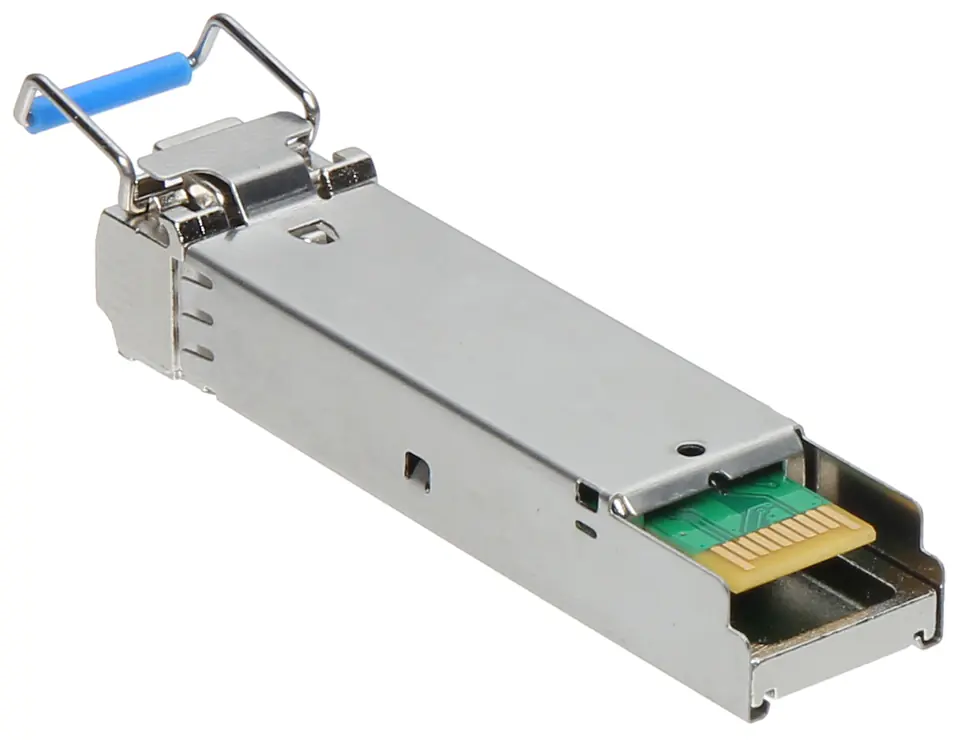 Optyczne moduły zgodne ze standardem SFP (Small Form-factor Pluggable) to urządzenia konwertujące sygnał elektryczny na optyczny oraz optyczny na elektrycznyStosowanie media konwerterów z możliwością wymiany modułów SFP jest szczególnie korzystne ze względu na uniwersalność np. w przypadku zmiany konfiguracji sieci zamiast wymieniać całe urządzenie lub dodawać nowe media konwertery wystarczy dobrać odpowiedni moduł SFP.