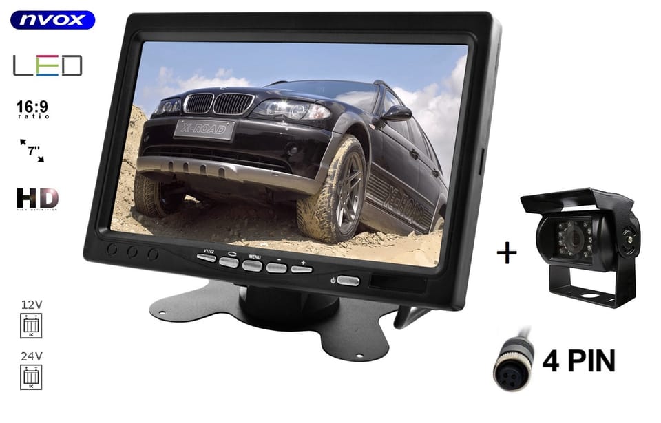 Monitor samochodowy 7" cali z kamerą cofania 4PIN 12V 24V zestaw