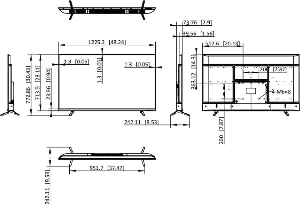 Wymiary produktu (szer. × wys. × gł.)Bez podstawy: 48,24" × 28,11" × 2,9"