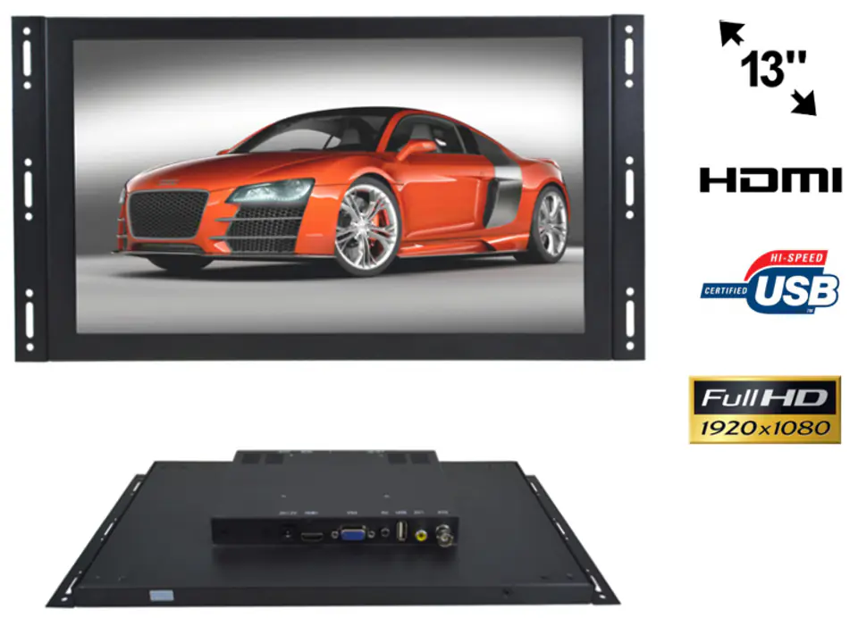 Monitor open frame ips led 13cali full hd vga hdmi usb av 12v 230v