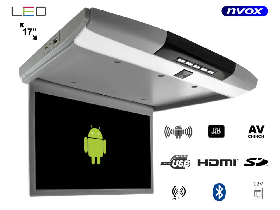 Monitor podwieszany podsufitowy LED 17" z systemem ANDROID USB SD FM BT WiFi 12/24V