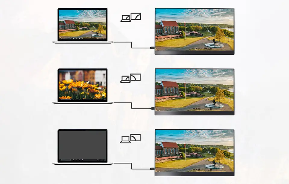 Model A1 M oferuje aż trzy tryby wyświetlania, dzięki czemu doskonale sprawdzi się w wielu sytuacjach. Tryb Duplicate pozwala na udostępnianie obrazu z laptopa na większy ekran, natomiast tryb Extend umożliwia rozszerzenie pulpitu z głównego ekranu na przenośny monitor, zapewniając jeszcze większą przestrzeń podczas pracy. Tryb Second Screen Mode pozwala na niezależne wykorzystanie A1 M jako drugiego ekranu.