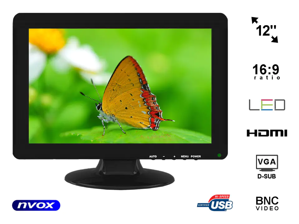Monitor samochodowy lub wolnostojący LCD 12cali cali LED VGA HDMI 12V 230V... NVOX PC1211 VGAH