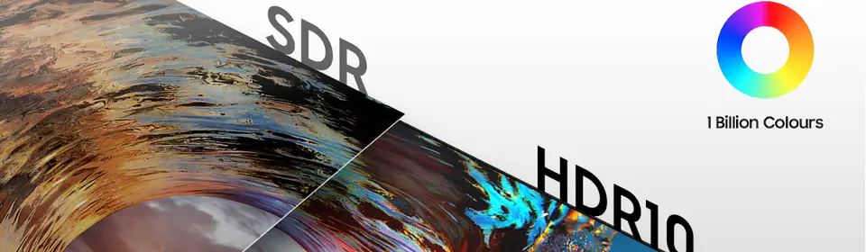 CIESZ SIĘ MILIARDEM KOLORÓWMiliard wyświetlanych kolorów sprawi, że możesz cieszyć się obrazami z oszałamiającą dokładnością kolorów i szczegółowością. Dodatkowo HDR10 rozszerza zakres tonalny barw, by jasne kolory były jeszcze jaśniejsze, a czernie głębsze. Każdy kadr będzie zachwycał i doświadczysz go tak, jak zamierzał to twórca.