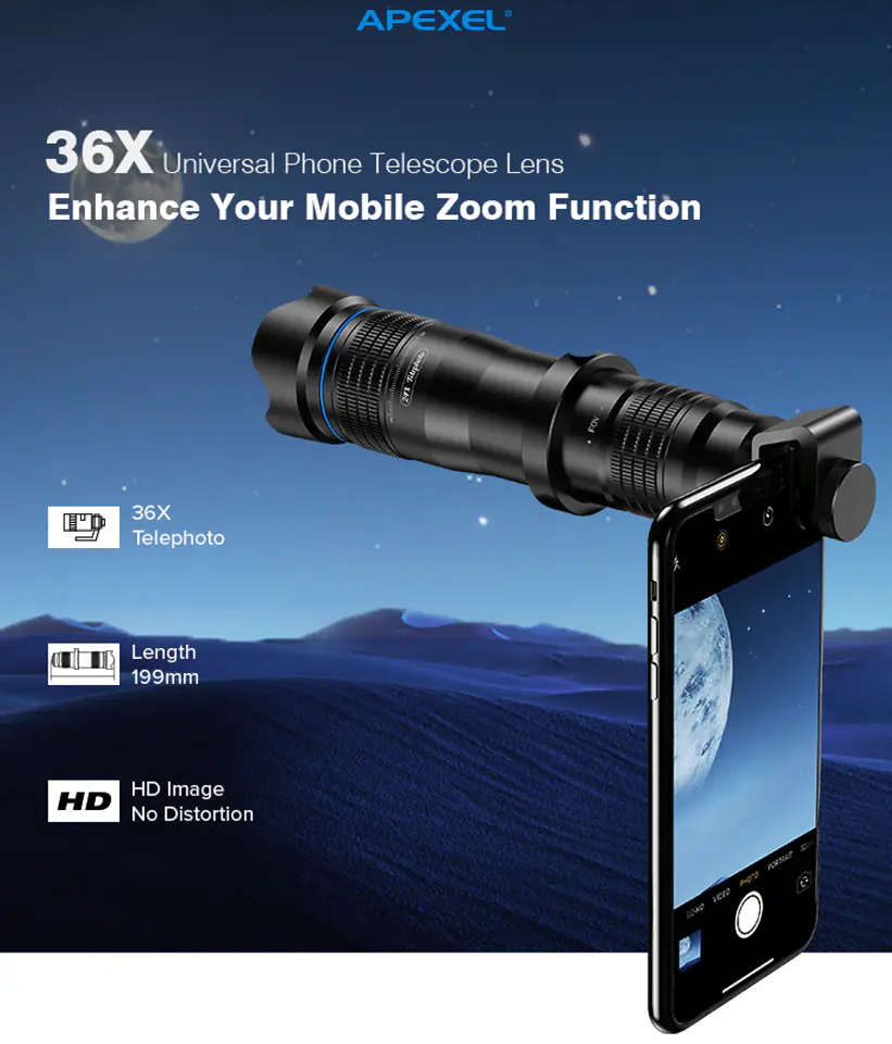 Teleobiektyw do telefonu z powiększeniem 36x + statyw APL-20-36XJJ04