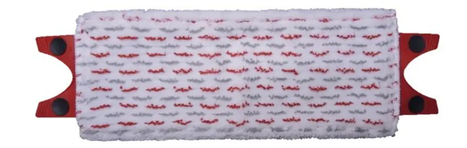 - Czerwone włókna radzą sobie z uporczywym brudem i drobinami bez konieczności stosowania detergentów.