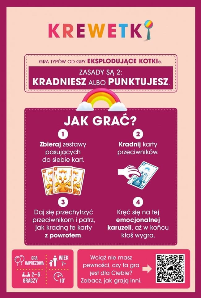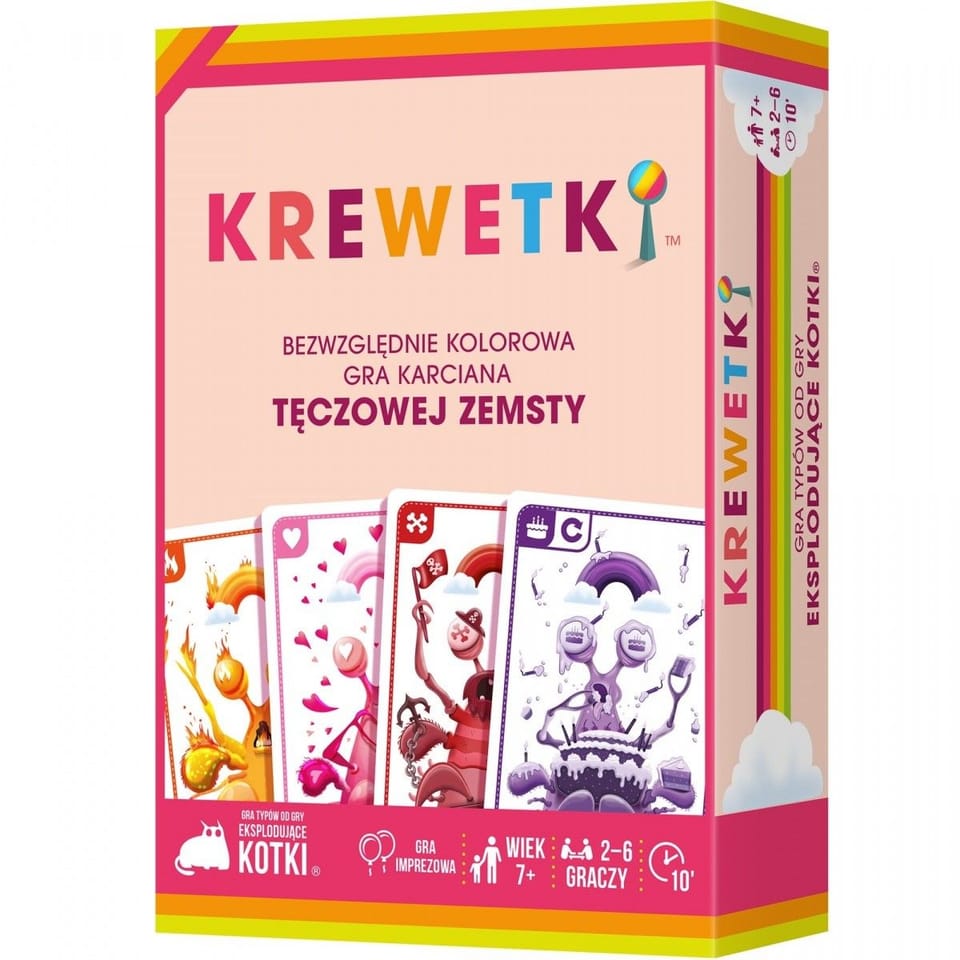 Mordercze Krewetki, nowa gra twórców Eksplodujących Kotków, to szalona zabawa, w której walczymy o to, kto jako pierwszy zbierze 10 kart na swoim stosie punktowania. W tym celu będziemy starali się zbierać zestawy w odpowiednich kolorach, dorzucając nowe karty do swojego akwarium lub kradnąc je od przeciwników. Niestety nigdy nie możemy być pewni, jaką kartę odkryjemy w swojej turze.