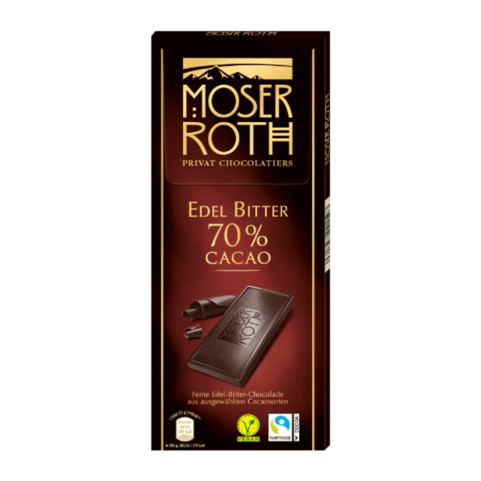 Odkryj wyjątkowy smak Moser Roth Czekolada Gorzka 70% Cacao, która przeniesie Cię w świat subtelnych smaków i doskonałej czekoladowej przyjemności.
