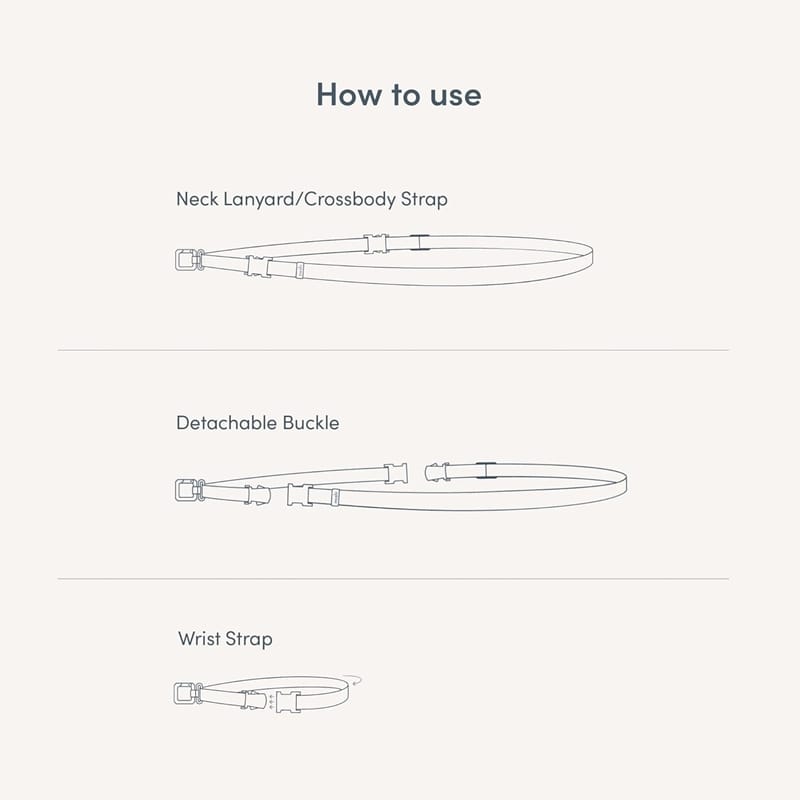 Innowacyjna odpinana klamra pozwala w kilka sekund zmienić pasek z wersji crossbody na smycz na nadgarstek. To idealne rozwiązanie na co dzień, w podróży, podczas zakupów, spacerów czy wydarzeń, gdy chcesz mieć telefon zawsze bezpiecznie przy sobie.