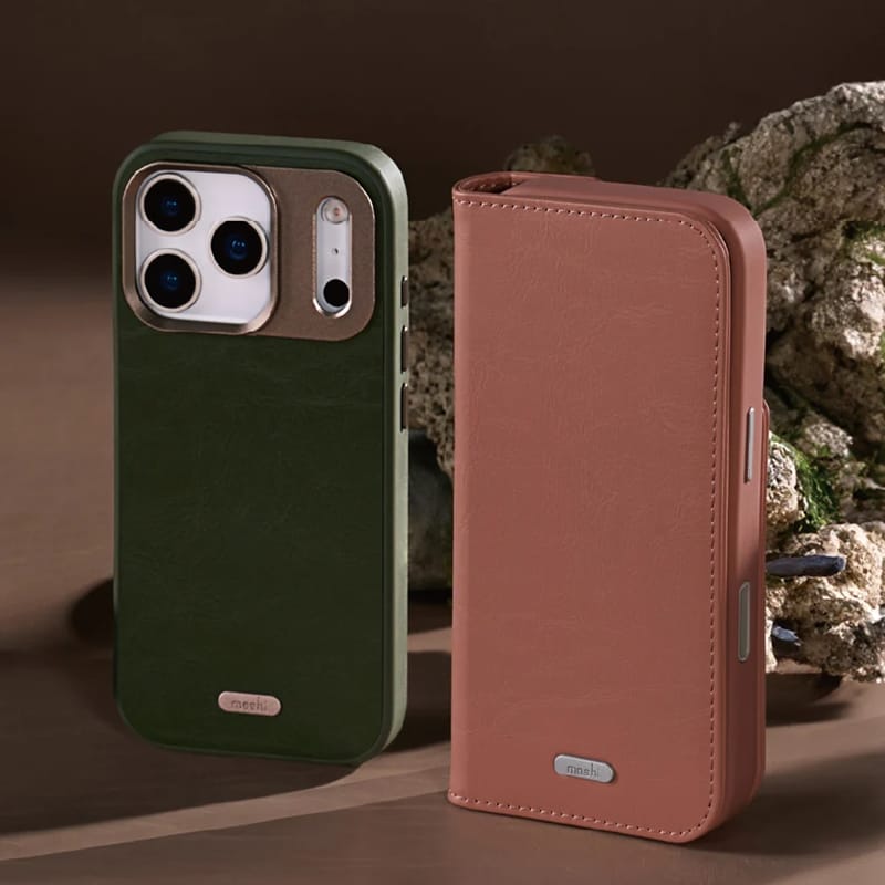 Moshi Overture MagSafe - Skórzane etui 3w1 z klapką iPhone 17 Pro Misty Coral