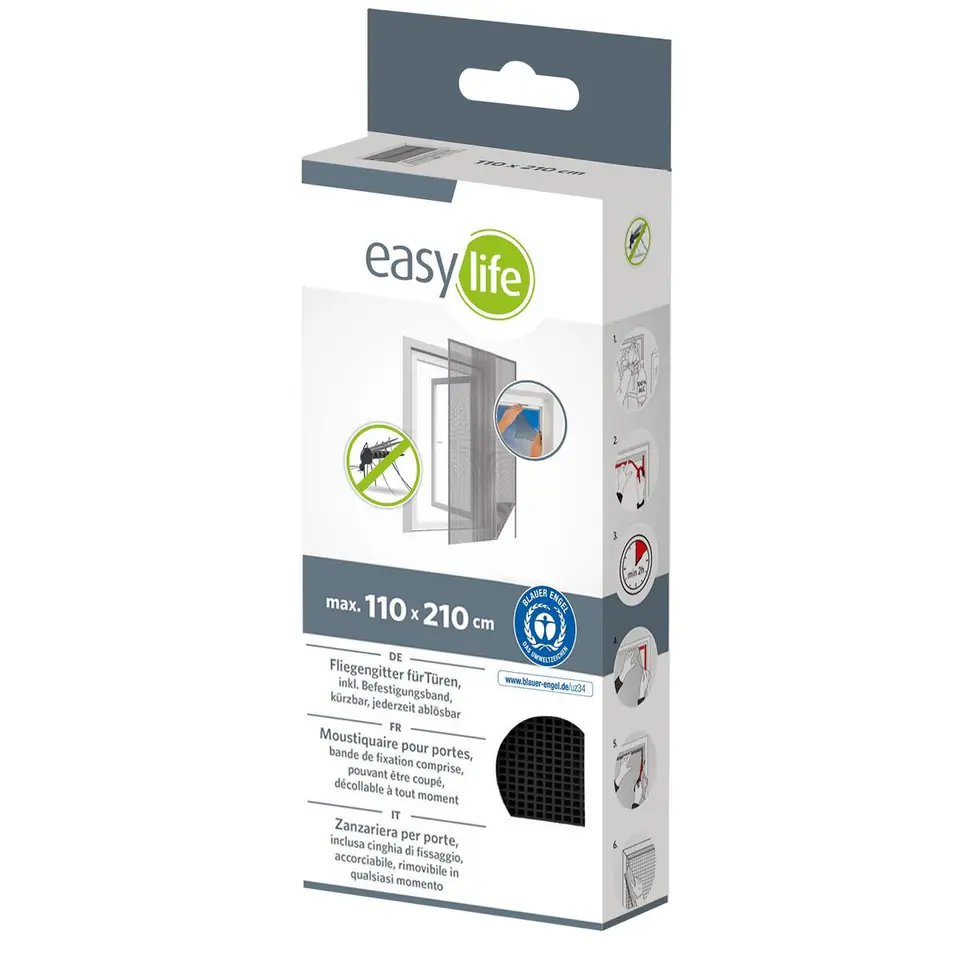 MOSKITIERA DRZWIOWA 2X60X210 OD EASY LIFE MAKO to skuteczne rozwiązanie, które chroni przed niechcianymi owadami jednocześnie przepuszczając powietrze. Możesz ją indywidualnie dopasować do wymiaru drzwi (wystarczy, że przytniesz materiał) i zamontować na dopasowanym pasku mocującym dołączonym do zestawu. Dzięki mocowaniu za pomocą taśmy samoprzylepnej zamontujesz ją szybko bez wiercenia i wkręcania, czyli bez pozostawiania śladów na ramie okna. Produkt wykonany jest z wytrzymałej siatki poliestrowej oraz mocnej taśmy odpornej na wiatr czy deszcz.