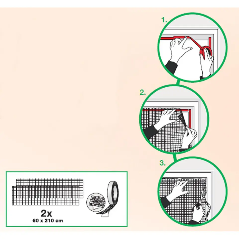 Parametry:- Wymiary: 2 x /60 x 210 cm/ (szer. x dł.)Kolor: czarny siatka, biały taśma mocującaSzerokość taśmy mocującej: 7 mmWielkosc oczka ok.: 2mmMateriał: poliester, taśma samoprzylepnaWymiar opakowania: 23 x 8,5 x 3,5 cm (dł. x szer. x gł.)Waga netto: 0,063 kgWaga brutto: 0,096 kgIlość w pudełku: 2 szt.