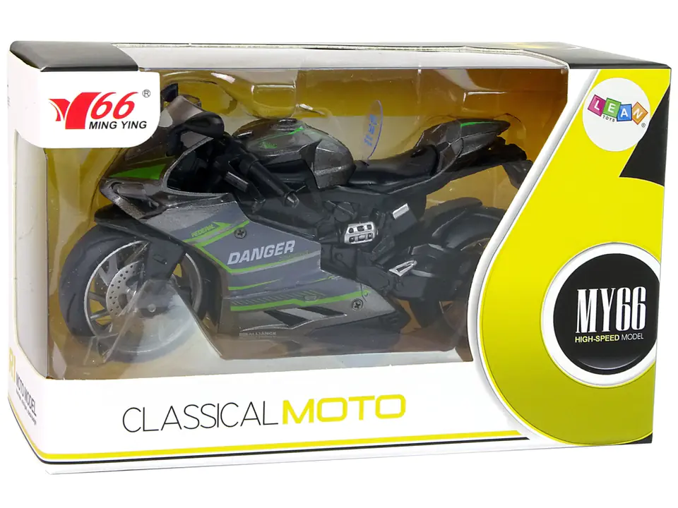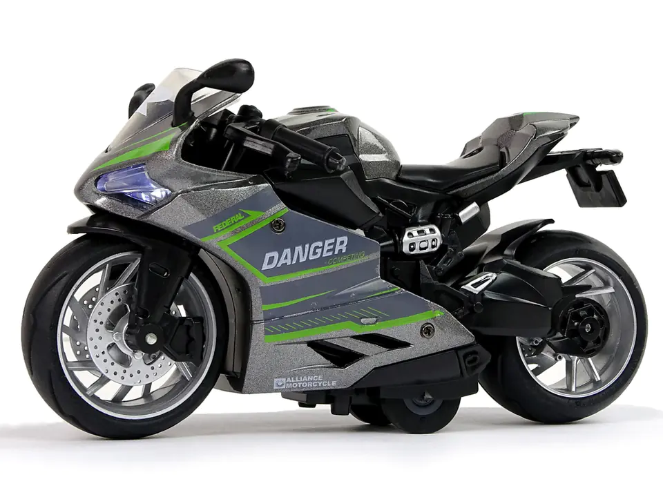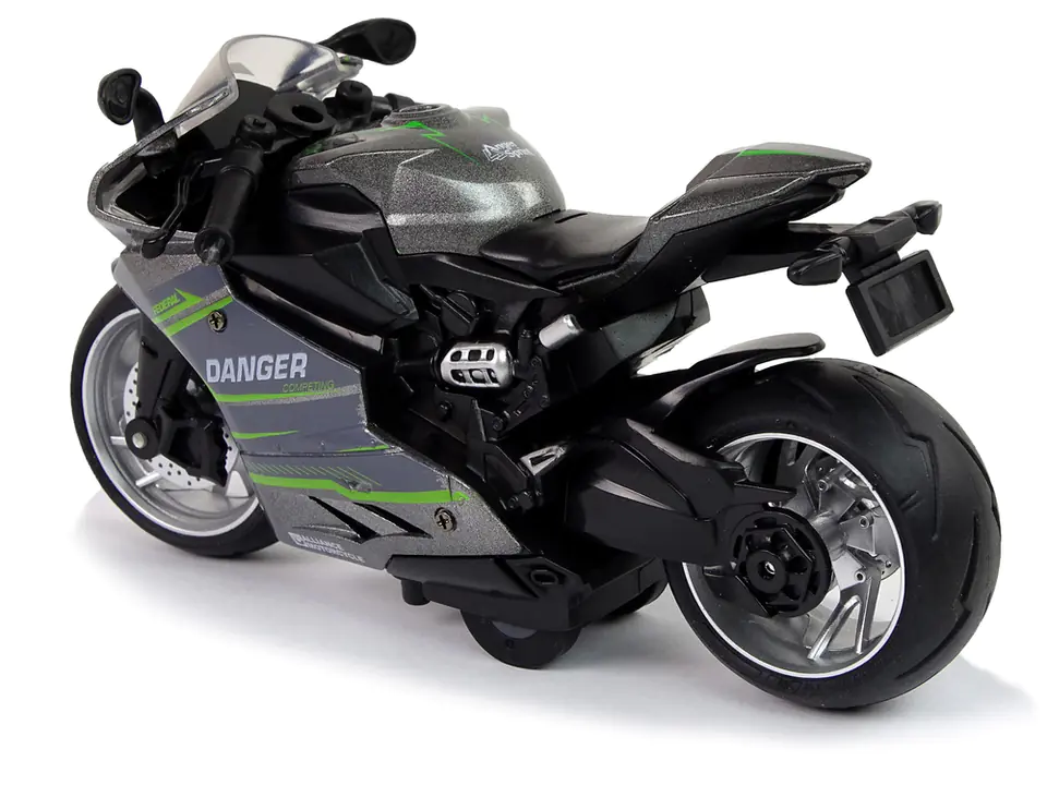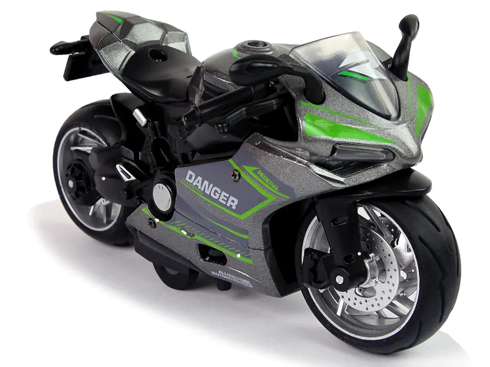 Motocykl Sportowy Szary Zielony Pasy 1:12 Napęd Pull-Back Dźwięk Światła