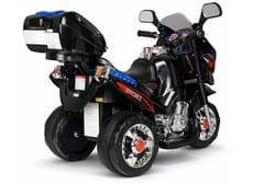 Czarna wersja akumulatorowego ścigacza przyciąga wzrok zarówno niecodzienną kolorystyką, jak i konstrukcją oraz zdobieniami w formie różnokolorowych, kontrastujących naklejek charakterystycznymi dla pełnowymiarowych pojazdów. Na połyskującym, czarnym nadwoziu wykonanym z trwałego i solidnego plastiku ABS umieszczono oznaczenia modelu, sprawiające, że pojazd wygląda bardzo nowocześnie i oryginalnie. Doznanie to podnosi imitacja chromowanych elementów przypominających układ wydechowy, co z pewnością zrobi wrażenie na każdym dziecku. Wysoce istotnym rozwiązaniem jest także trzykołowa konstrukcja, ułatwiająca prowadzenie pojazdu dzieciom mającym problem z utrzymaniem równowagi podczas jazdy. Zabawa jeszcze nigdy nie była tak prosta!Czarny ścigacz HC8051 wyposażony jest w akumulator żelowy 6V4,5Ah oraz silnik typu STRONG o mocy 18 W. Duet tych podzespołów pozwala na osiągniecie prędkości oscylującej wokół 4 km/h, co przyniesie ogromną frajdę każdemu dziecku. Co więcej: model ten posiada dwa biegi — przód i tył, co w dużym stopniu ułatwia zabawę. Konstrukcja dziecięcego motorka na akumulator jest bardzo przemyślana — ulokowano ją na kołach o wielkości 19 cm, na których umieszczono gumowe opaski. Rozwiązanie to pozwala na jazdę na utwardzonej powierzchni różnego rodzaju, nie wydając przy tym hałasu.