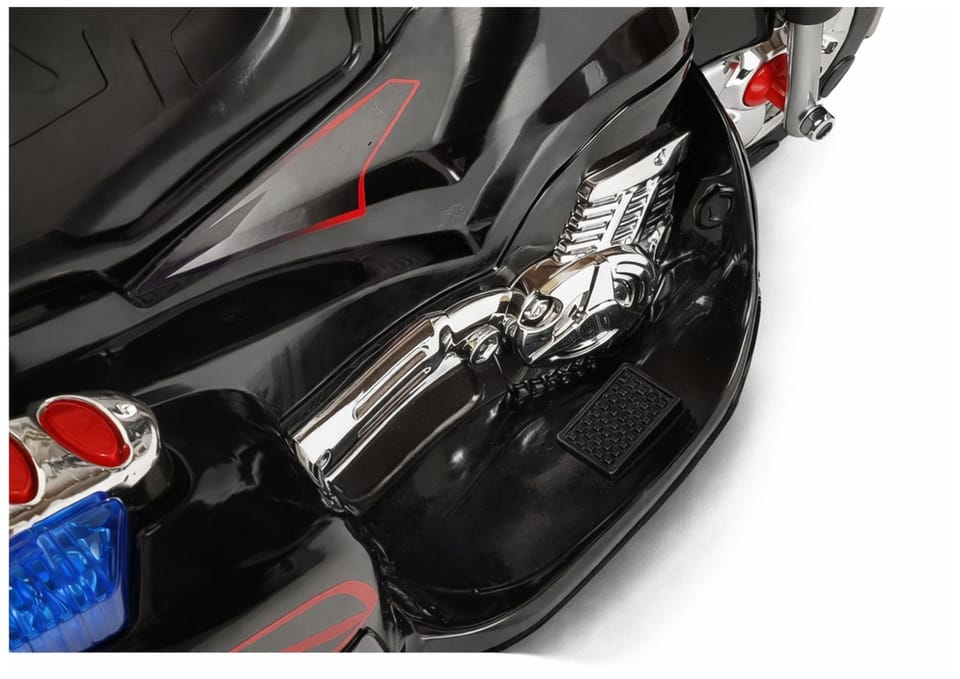 Kolejne elementy, będące dużymi zaletami budowy modelu HC8051, to przeźroczysta owiewka, lusterka boczne oraz oświetlenie LED, zwiększające widoczność dziecka na drodze. W tylnej części czarnego motorka znajduje się otwierany kufer, w którym mały kierowca może przetrzymywać swe skarby. Stanowi on również oparcie dla malucha, będące blokadą przed zbyt dużym wysunięciem się do tyłu. Elementem, którego nie można pominąć, jest klakson i przyciski muzyczne umieszczone w okolicy kierownicy. Teraz każdy maluch będzie mógł wczuć się w rolę prawdziwego kierowcy, trąbiąc do swych mijanych przyjaciół.
