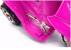 Kolejne elementy, będące dużymi zaletami budowy modelu HC8051, to przeźroczysta owiewka, lusterka boczne oraz oświetlenie LED, zwiększające widoczność dziecka na drodze. W tylnej części różowego motorka znajduje się otwierany kufer, w którym mały kierowca może przetrzymywać swe skarby. Stanowi on również oparcie dla malucha, będące blokadą przed zbyt dużym wysunięciem się do tyłu. Elementem, którego nie można pominąć, jest klakson i przyciski muzyczne umieszczone w okolicy kierownicy. Teraz każdy maluch będzie mógł wczuć się w rolę prawdziwego kierowcy, trąbiąc do swych mijanych przyjaciół.