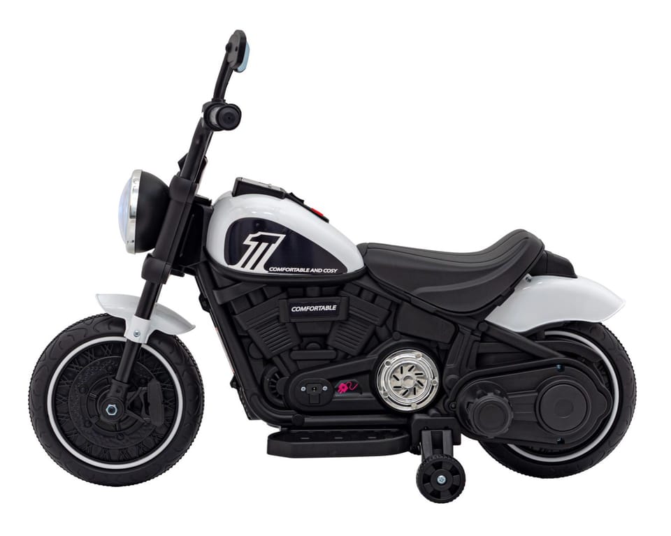 Motorek Chopper FASTER na akumulator dla dzieci Biały + Radio FM + Panel audio + LED