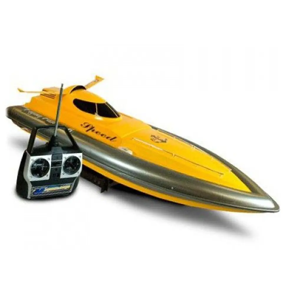 Sterowana jest za pomocą w pełni funkcjonalnego proporcjonalnego nadajnika radiowego, dzięki któremu możesz sterować łodzią do przodu, w lewo, w prawo i zatrzymać się.