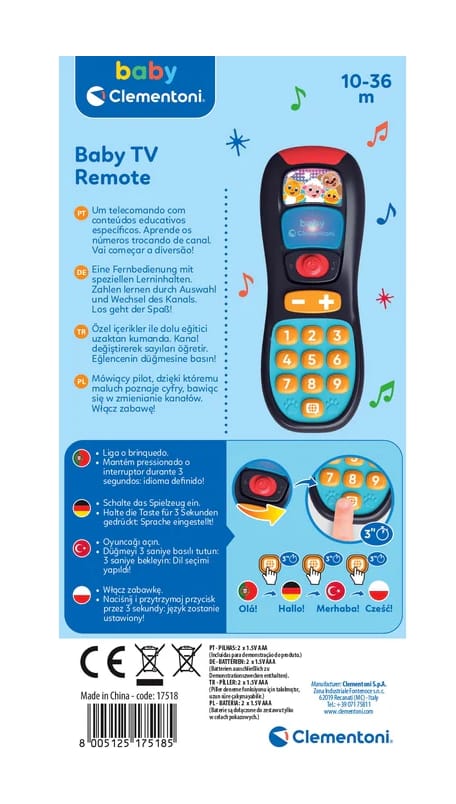 Mówiący Dziecięcy Pilot TV Język Polski Niemiecki Turecki Portugalski Clementoni 17518