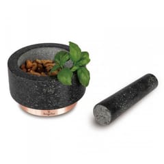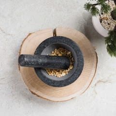 Moździerz z tłuczkiem do ręcznego rozdrabniania i ucierania różnorodnych substancji z linii Black Rose. Niewielką ilość substancji rozdrobnisz, poprzez tarcie tłuczkiem po lekko chropowatej powierzchni miseczki. Miseczka i tłuczek wykonane są z granitu. Cechy produktu:- Ręcznie wykonany z bloku twardego granitu- Bardzo wytrzymały, nie wytrze się, nie pęknie, bez względu na siłę ucierania- Dzięki szlifowanemu wykończeniu zewnętrznej strony moździerza i ubijaka będzie on estetyczną ozdobą każdej kuchni- Rozmiar moździerza: Ø14 x 8 cm, tłuczek dł. 14,8cm- Materiał: naturalny granit...