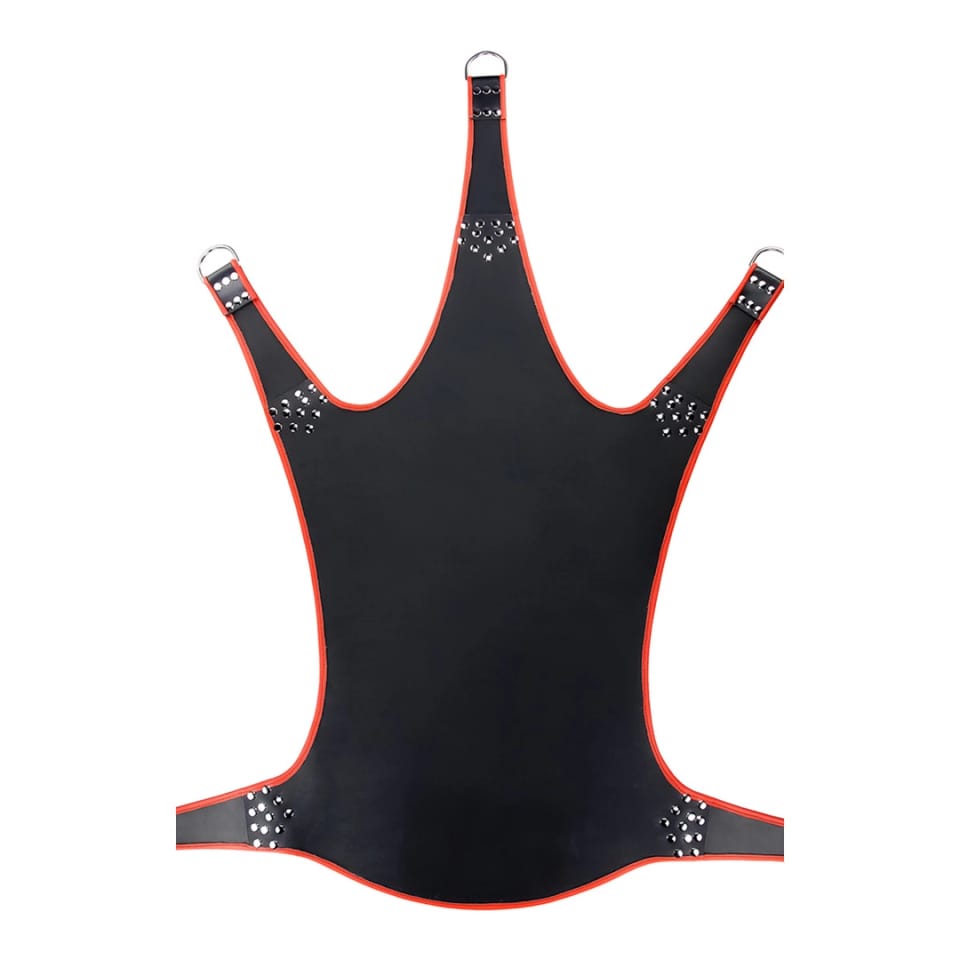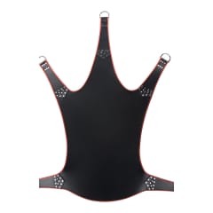 Mr. Sling Pas skorzany z czerwoną lamowką, 5-punktowy, 113x122 cm to wyjątkowy model stworzony z myślą o osobach ceniących wysoką jakość wykonania i stylowe detale. Wyrożnia się czarną, naturalną skorą o gładkiej fakturze, ktora została elegancko wykończona kontrastującą czerwoną lamowką. Precyzyjne szycie oraz staranne wykończenie podkreślają wytrzymałość oraz estetykę produktu.