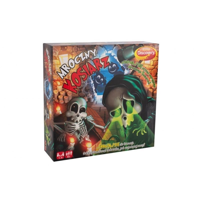 Mroczny Kosiarz Mroczny Kosiarz strzeże trumny otoczonej przez cztery świece. Zadaniem gracza jest dmuchać w swoją świeczkę jak najwięcej razy. UWAGA! Unikaj wzroku Kosiarza, jego głowa kręci się dookoła, chowaj się przed jego spojrzeniem i dmuchaj w świeczkę tylko wtedy, gdy na Ciebie nie patrzy. W przeciwnym razie, Kosiarz ukarze Cię i przez chwilę nie będziesz mógł uczestniczyć w zabawie. Gdy czas się skończy wieko trumny odskoczy, a w jej wnętrzu na liczniku pojawi się wynik gracza, który zdobył najwięcej punktów, zaświeci się także płomień jego świecy, wskazując, który gracz został zwycięzcą. Zabawka przeznaczona dla maksymalnie 4 graczy. W zestawie: - światło - dźwięk - gra przeznaczona dla maksymalnie 4 graczy Baterie: 3xAAA (niezawarte w zestawie) Wymiary: Opakowanie - 27x27x10cm Wiek: 5+