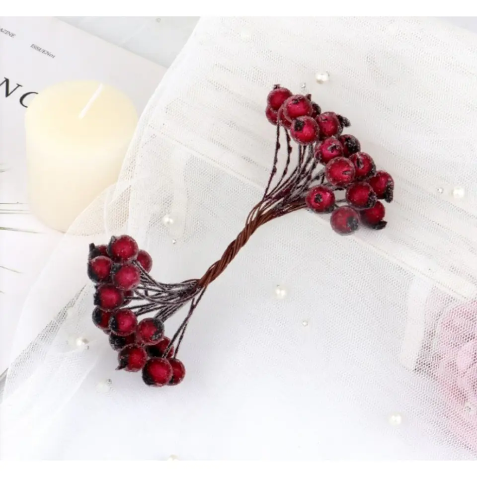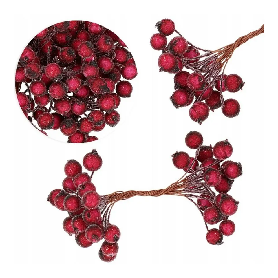 Ozdoba ŚwiątecznaMroźna jarzębina ciemna sztuczna 20szt wiązka GLZ02 Materiał:Produkt wykonany z tworzywa sztucznego. Wymiary:Wysokość gałązki: 15cmŚrednica owoców: 1,2cm Waga: 20g netto / 21g brutto