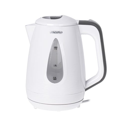 Duży, elektryczny czajnik rodzinny, pozwalający sprawnie zagotować wodę na herbatę dla 6-7 osób dzięki mocy 2200 W. Zaopatrzony w wyraźny wskaźnik poziomu wody, wyłączy się automatycznie po jej zagotowaniu. Blokada uniemożliwi również włączenie pustego czajnika, oszczędzając w ten sposób energię i dbając o bezpieczeństwo użytkownika. Filtr osadów zapewni natomiast odpowiednią jakość wody. Dla wygody został zaopatrzony w obrotową podstawę, płaskie dno oraz grzałkę za stali szlachetnej i lampkę informująca o zagotowaniu wody. Biały i nie rzucający się w oczy pozwala zagotować na raz 1,7 l wody.