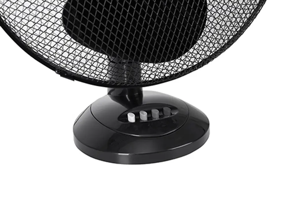 Wydajny wentylator o mocy maksymalnej 45W. Wpływa na ochłodzenie pomieszczenia i zapewnienie w nim większej ilości świeżego powietrza. Posiada stabilną podstawę, co sprawia, że może być postawiony nawet na nierównej powierzchni bez obawy o przewrócenie. Dzięki obrotowej głowicy, jedno urządzenie może objąć zasięgiem większy obszar. Regulacja kąta nachylenia daje możliwość pionowej zmiany kierunku nadmuchu. Wentylator posiada średnicę 23 cm, jest niewielki i lekki, co ułatwia przenoszenie oraz ustawienie w miejscu o ograniczonej powierzchni. Dwie prędkości pozwalają zadecydować o sile nadmuchu.