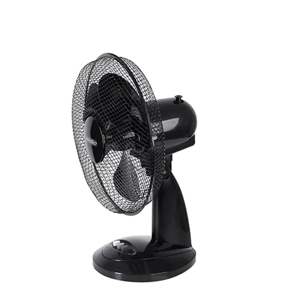 Wydajny wentylator o mocy 70W. Wpływa na ochłodzenie pomieszczenia i zapewnienie w nim większej ilości świeżego powietrza. Posiada stabilną podstawę, co sprawia, że może być postawiony nawet na nierównej powierzchni bez obawy o przewrócenie. Dzięki obrotowej głowicy, jedno urządzenie może objąć zasięgiem większy obszar. Regulacja kąta nachylenia daje możliwość pionowej zmiany kierunku nadmuchu. Model jest wentylatorem średniej wielkości o średnicy 30 cm. Trzy prędkości pozwalają zadecydować o sile nadmuchu.