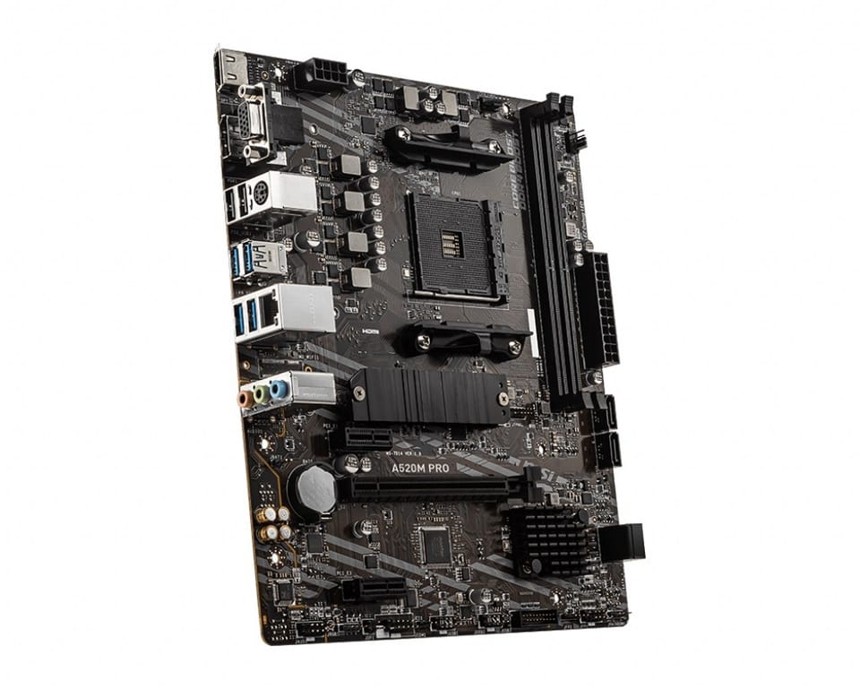 Płyta główna MSI A520M PRO obsługuje procesory AMD Ryzen™ trzeciej generacji oraz desktopowych układów z serii AMD Ryzen™ 4000 G. Wbudowany interfejs HDMI obsługuje rozdzielczości do 4K UHD. Seria PRO pomaga użytkownikom pracować w znacznie bardziej sprytny sposób, co bezpośrednio przekłada się na wyższą wydajność i produktywność. Dzięki szerokim możliwościom funkcjonalnym i wysokiej jakości montażu, płyty główne z serii PRO charakteryzują się tylko optymalizacją pod kątem profesjonalnych zadań, ale także minimalizują liczbę mogących się pojawić podczas długoletniej eksploatacji problemów i oferując tym samym znacznie dłuższą żywotność.