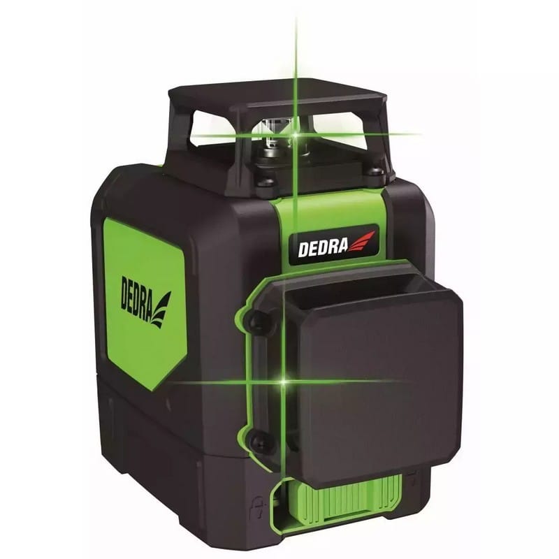 Laser pozwoli nam na automatyczne wytyczenie linii poziomej (360°), pionowej oraz linii krzyżowej. Zasięg lasera tego modelu wynosi 30m. Przy zastosowaniu detektora zasięg wzrasta do 50m. Laser posiada system samopoziomujący w zakresie 4°, co pozwala nam na pracę bez konieczności ręcznej kalibracji lasera. Laser jest przystosowany do pracy z uchwytem magnetycznym bądź tyczką rozporową.