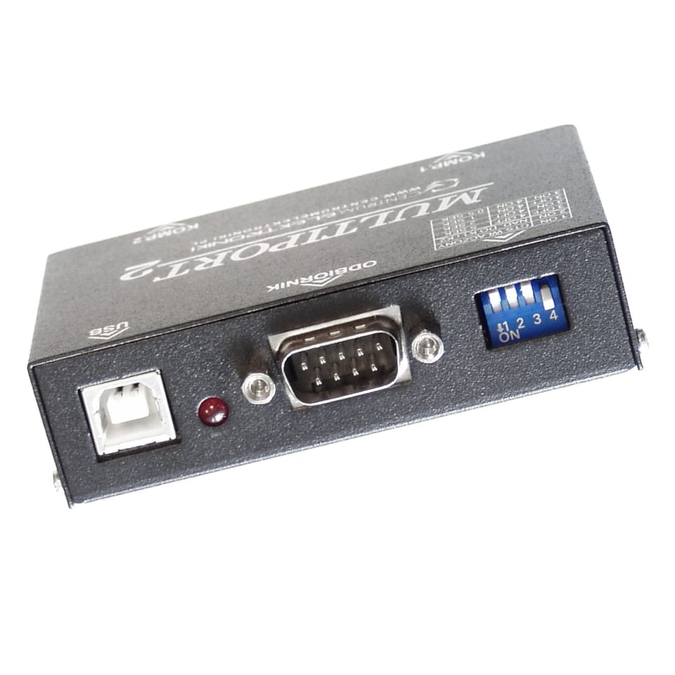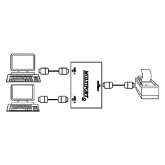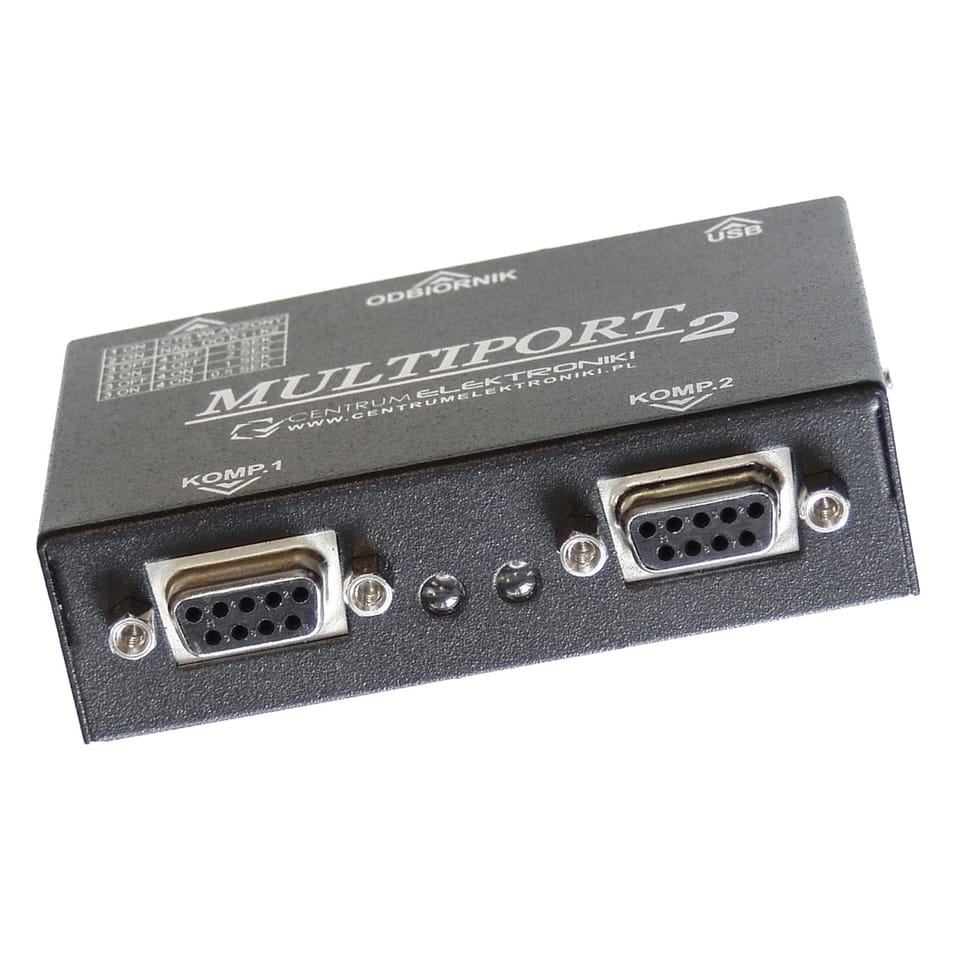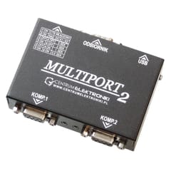 Cechy- Jest uniwersalne: drukarka w dalszym ciągu jest zakończona portem RS232 oprogramowanie nie widzi żadnej różnicy czy komunikacja przebiega bezpośrednio z drukarką czy z urządzeniem MULTIPORT 232- Jest proste w użyciu: wybieranie portu przez który aktualnie odbywa się komunikacja z drukarką odbywa się automatycznie i nie trzeba stosować żadnych przełączników, instalacja ogranicza się do podłączenia urządzenia MULTIPORT 232 pomiędzy drukarkę i komputer oraz dostarczenia zasilania z portu USB komputera lub zasilacza.- Niezawodne: w czasie kiedy przez jeden z dwóch portów urządzenia odbywa się komunikacja z drukarką drugi port pozostaje nieaktywny (w tym czasie otrzymuje sygnał wstrzymania transmisji) do czasu zakończenia transmisji na pierwszym porcie i nie wprowadza zakłóceń.- Tanie: koszt urządzenia jest około 10-krotnie niższy niż drugiej drukarki!