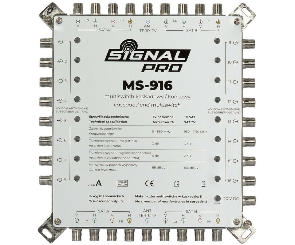 Multiswitch MS-916 SIGNAL PRO 9/16 jest przeznaczony do instalacji zbiorczych RTV-SAT.