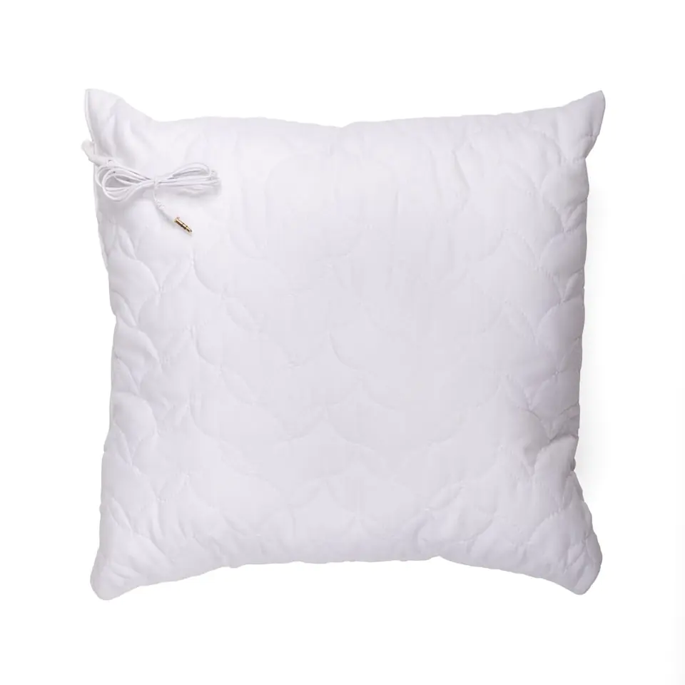 - Dźwięki wydobywające się z głośnika są słyszalne tylko dla osoby przytulonej do poduszki. Głośność dźwięku jest łatwo sterowana ze źródła muzyki. Głośnik wewnątrz poduszki jest niewuczuwalny w trakcie snu. Nie wymaga dodatkowego zasilania, czerpie energię z odtwarzacza. Posiada wtyk 3,5 mm (mały jack